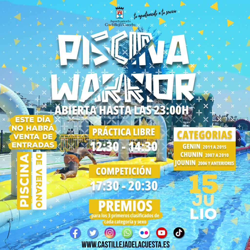 Castilleja de la Cuesta de la Cuesta se convertirá mañana, a partir de las 12.30 horas, en el escenario de Piscina Warrior, una divertida competición en la que vecinos y vecinas de todas las edades se pondrán a prueba en las colchonetas e hinchables, sumergidos en el agua y se enfrentarán a diferentes retos.