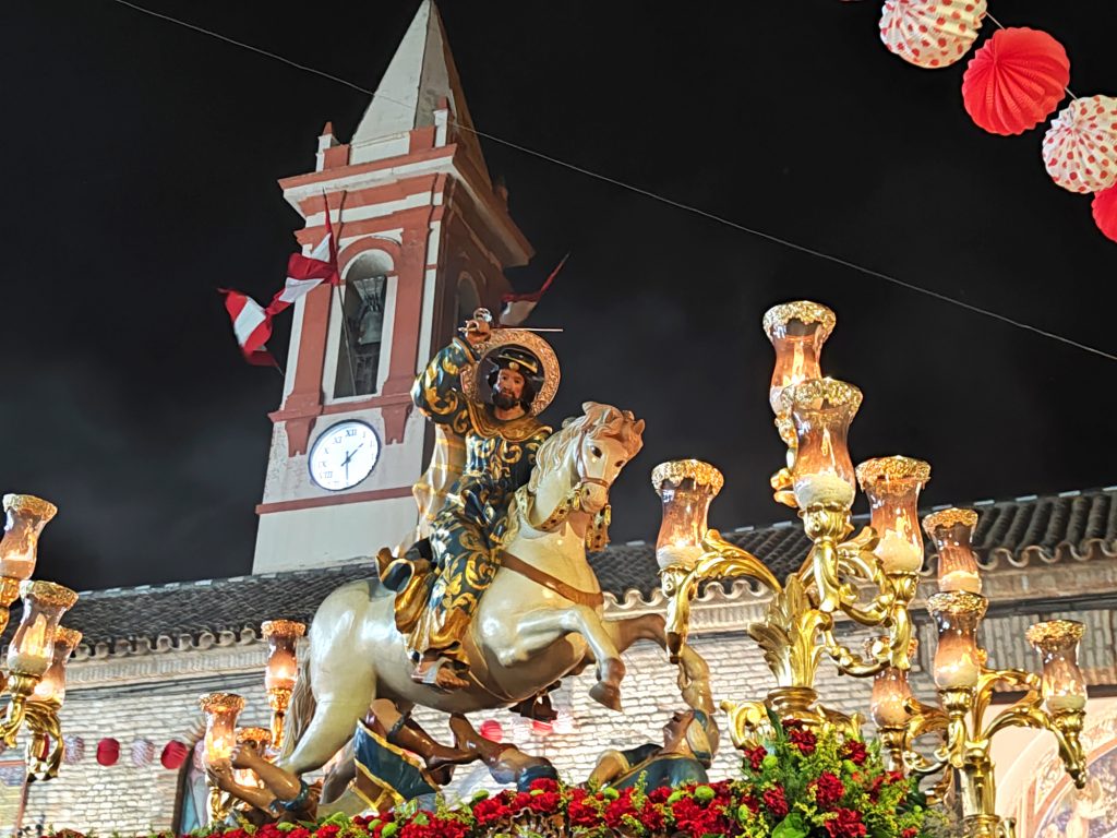 Ya el martes día 25 de julio, Solemnidad litúrgica del Patrón, los actos comenzarán en la medianoche con el repique de campanas, estallido de cohetes y la salida del Santo Rosario, presidido por el Simpecado de Nuestra