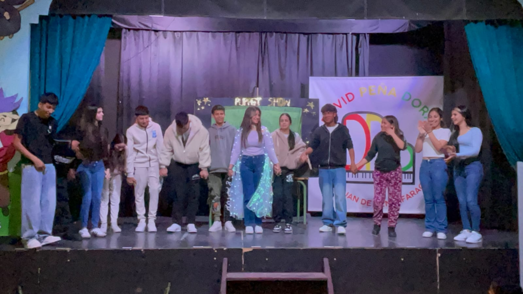El proyecto culminó hoy con la representación teatralizada en inglés del cuento The Very Hungry Caterpillar, para la que el propio alumnado diseñó y construyó marionetas. La actividad tuvo lugar en el CEIP Peña Dorantes, un centro especialmente significativo para muchos de los participantes, ya que fue su colegio de primaria y donde actualmente estudian sus hermanos y familiares más pequeños.