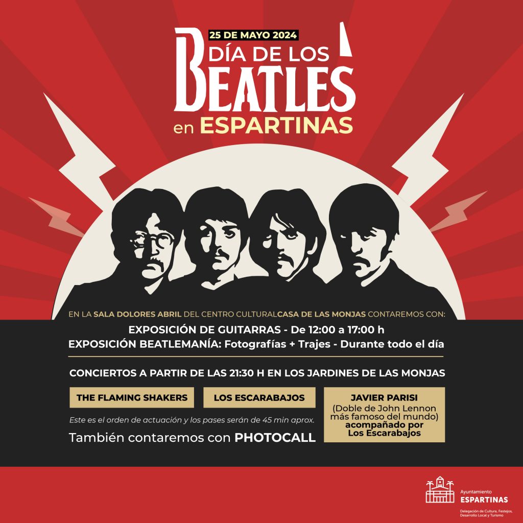 El Ayuntamiento de Espartinas ha organizado el I Día de los Beatles en la localidad con el que se pretende homenajear al grupo de Liverpool. El próximo 25 de mayo los jardines del Centro Cultural Casa de las Monjas acogerán un concierto con las actuaciones de Los Escarabajos, The Flaming Shakers y Javier Parisi, considerado como el mejor imitador de John Lennon en el mundo con un parecido físico innegable. El concierto comenzará a las 21.30 horas y la entrada es gratuita hasta completar aforo.