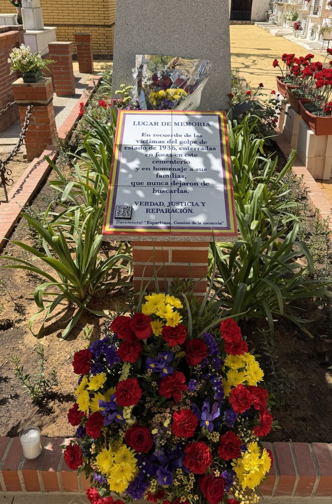 Ayer domingo 19 de abril de 2026, Espartinas inauguró su Lugar de Memoria en el Cementerio Municipal de San Fernando, un monolito y un jardín erigidos para honrar a los cuerpos encontrados en las fosas comunes de este lugar. La iniciativa ha sido impulsada por el Ayuntamiento de Espartinas a través de la Delegación de Memoria Democrática, que dirige José María Calado. El acto reunió a representantes institucionales, académicos y numerosos familiares y vecinos de la localidad.