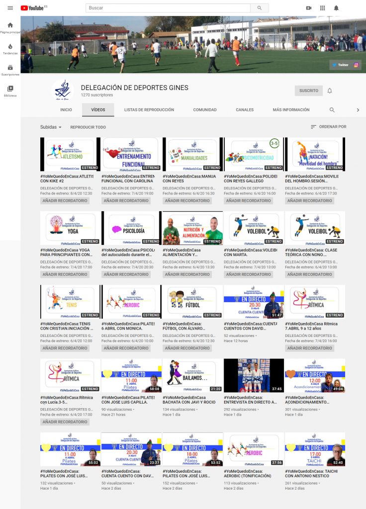 Con el objetivo de fomentar la actividad física en casa mientras dure el confinamiento, la delegación de Deportes del Ayuntamiento de Gines ha puesto en marcha un nuevo canal en YouTube, una plataforma a la que los vecinos y vecinas pueden suscribirse gratuitamente para realizar ejercicio físico en sus propios domicilios de la mano de monitores especializados.