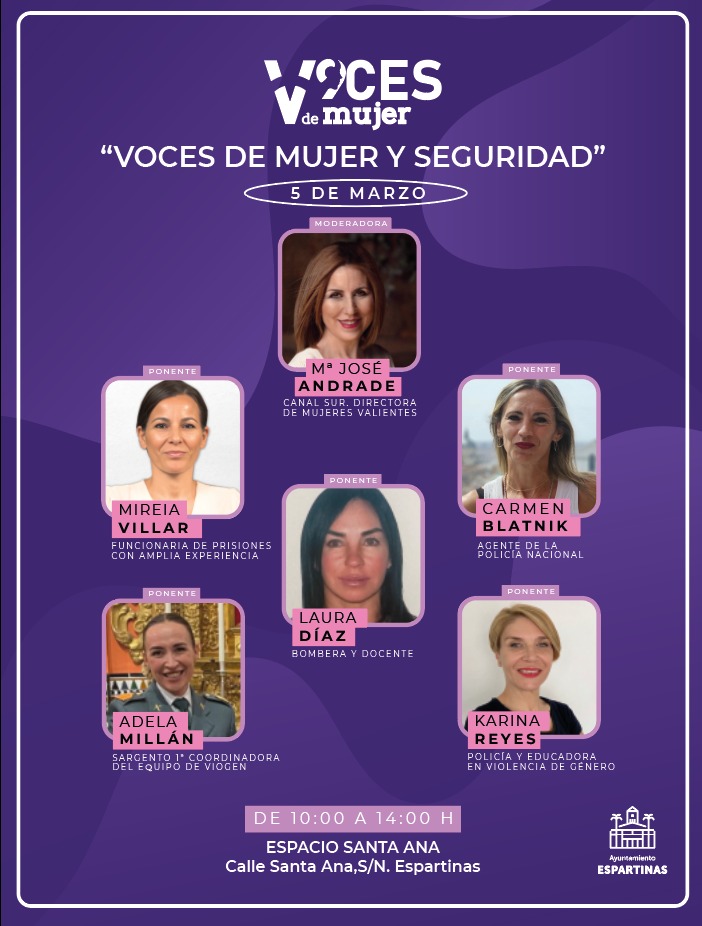 La jornada “Voces de Mujer y Seguridad” tendrá lugar el jueves 5 de marzo, en el Auditorio del Espacio Santa Ana, de 10:00 a 14:00 horas, con entrada libre hasta completar aforo.