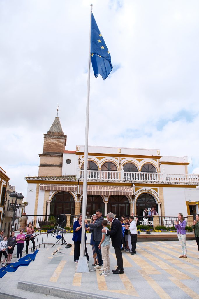 Bajo el lema ‘Ciudadanía que une, valores que inspiran’, el acto contó con la presencia del Alcalde, Romualdo Garrido, y la Directora de Europe Direct Sevilla, María Cruz Arcos, así como representantes del Movimiento Andaluz por Europa y de los centros educativos El Majuelo y Ángel Campano, que participan en proyectos europeos.