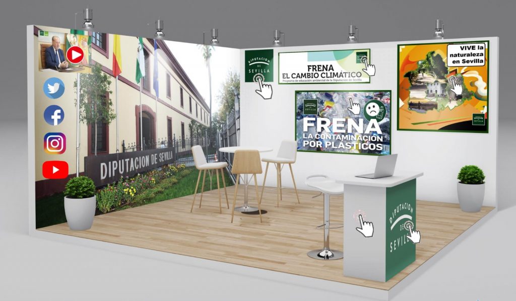 Son contenidos que atañen a la transición energética y las acciones desplegadas para combatir en la provincia el cambio climático, y a las iniciativas de concienciación, dirigidas a las sevillanas y sevillanos más jóvenes, para frenar el consumo de plásticos de un solo uso. Además, las personas que visiten el expositor virtual de la Diputación conocerán también la oferta de naturaleza con la que cuenta la provincia.