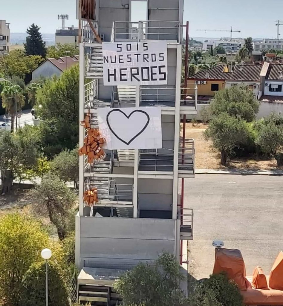 Ante esta situación, los bomberos han querido mostrar su apoyo y mandarles un mensaje por todo lo alto, y nunca mejor dicho, pues es a través de una pancarta instalada en la torre de prácticas. «Sois nuestros héroes«, dice el texto.
