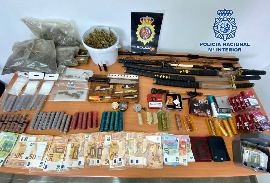 Los agentes intervinieron armas, cannabis, efectos para la preparación de dicha sustancia para su posterior venta, y la cantidad de 13.720,43 euros en efectivo. Además procedieron a la detención de cuatro personas en el interior de la vivienda y de otras dos que habían intentado huir del domicilio pero fueron interceptadas por los agentes que formaban parte del amplio dispositivo policial.