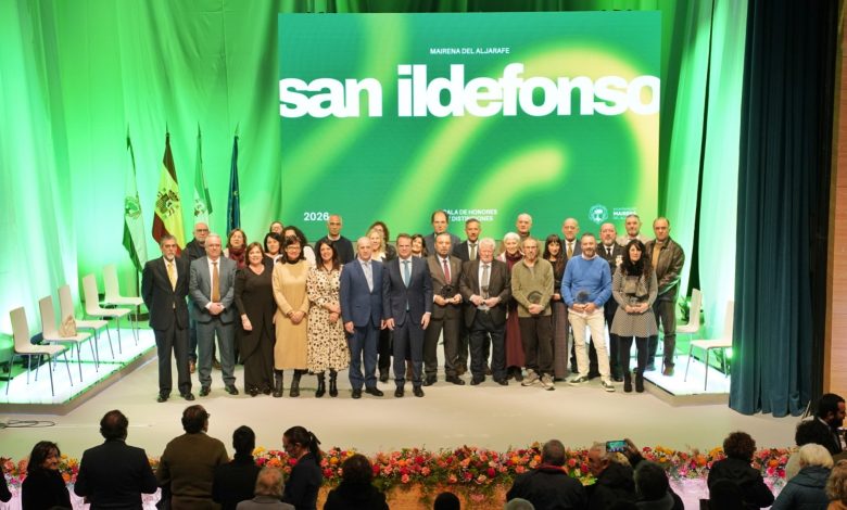El Ayuntamiento de Mairena del Aljarafe ha entregado hoy, martes 27 de enero, las distinciones con motivo del Día de San Ildefonso 2026, patrón de la localidad, en un acto celebrado en el Teatro Villa de Mairena. La cita, una de las más relevantes del calendario municipal, se ha celebrado tras haber sido aplazada desde el pasado 22 de enero como consecuencia de los días de luto oficial decretados a nivel nacional en recuerdo de las personas fallecidas en el accidente ferroviario de Adamuz (Córdoba).
