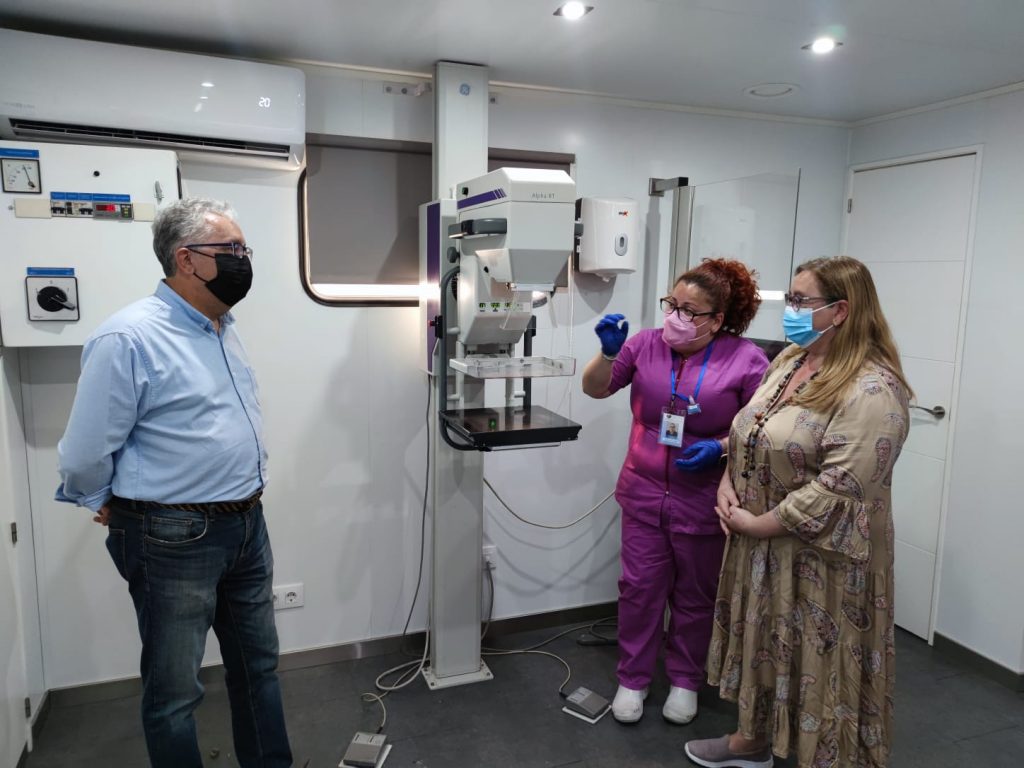 La unidad móvil, situada en la Calle Camino de Gines ha contado con la visita del alcalde, Francisco Molina, y la delegada de Igualdad, Carmen Garfia, que se han interesado por la técnica utilizada que permite una presión menor en los senos y resulta menos molesta para las pacientes.