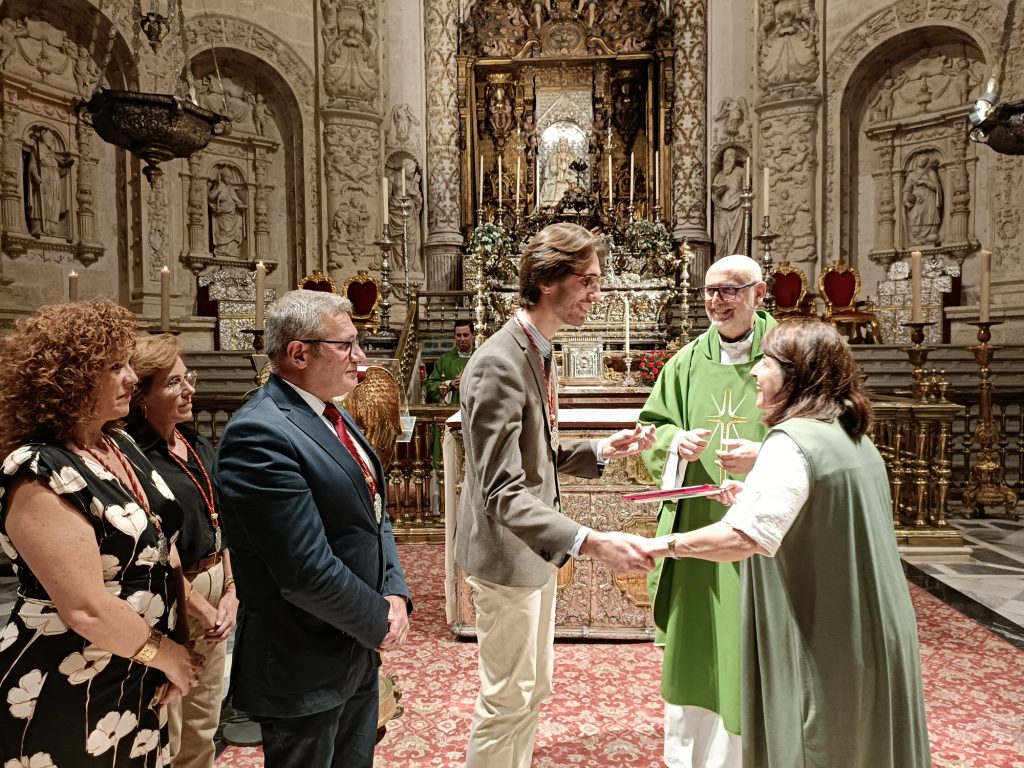 En el acto estuvieron presentes la consiliaria primera de nuestra Hermandad, María José Cabrera Tovar; el tesorero primero, Rafael Tovar; la tesorera segunda, María José Cabrera Sánchez; y el diputado de Cultos y Formación Gregorio Quesada, quien fue el encargado de recibir la medalla de manos del sacerdote Manuel Cotrino Contreras y la secretaria de la Asociación de Fieles de Nuestra Señora de los Reyes y San Fernando, Marta Valpuesta.