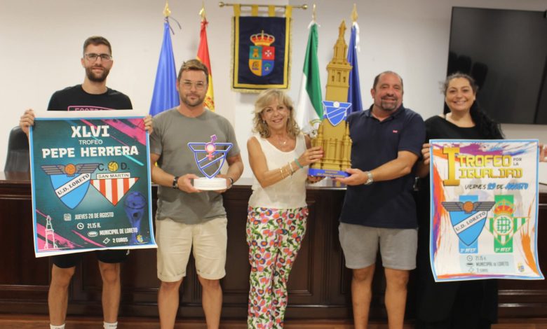 El Ayuntamiento de San Juan ha sido el escenario donde se han presentado dos trofeos que van a situar a nuestro municipio en el epicentro del fútbol provincial. El presidente de la UD Loreto, Miguel Ángel Gil, el coordinador de fútbol base, José Manuel Baena acompañados de la alcaldesa de San Juan, María Luisa Moya, y los delegados de Deportes, Carlos Amado e Igualdad, Dolores Amaya han presentado los carteles y los trofeos que presidirán esta edición del Trofeo Herrera y del Trofeo de la Igualdad.
