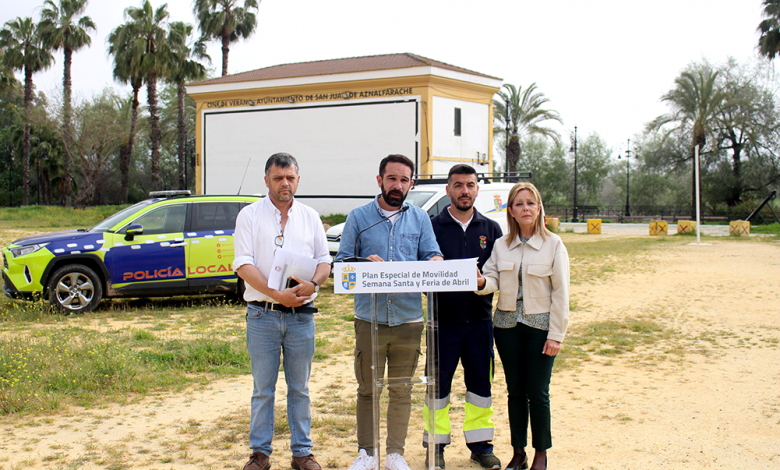 Desde el Viernes de Dolores hasta el Domingo de Resurrección y desde el Lunes del Pescaíto hasta el domingo de Feria de Abril estará activo este Plan Especial de Movilidad que hoy se ha presentado en los terrenos que, en los meses estivales, ocupa el cine de Verano de San Juan de Aznalfarache. Esta parcela, de unos 6.000 metros cuadrados se habilitarán durante estos dos periodos como aparcamiento disuasorio con una capacidad para entre 200 y 220 vehículos aproximadamente a unos 300 metros de la estación de metro de San Juan Bajo.
