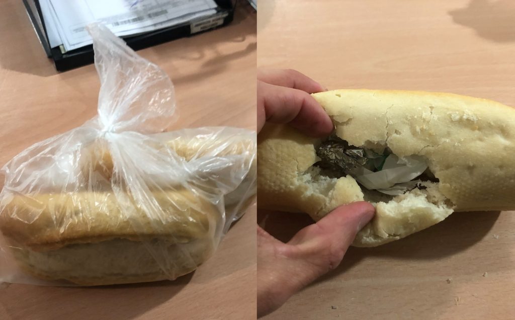 Mientras se le informaba de que se había saltado el cierre perimetral entre municipios, este individuo portaba entre sus pertenencias dos piezas de pan en una bolsa. Algo llamó la atención de los agentes, que cuando observaron más detalladamente el pan pudieron observar que dentro había varios tipos de droga.