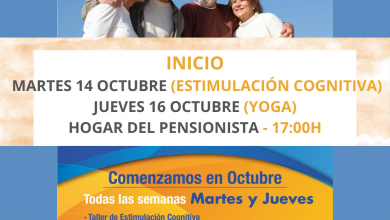 Redacción El próximo martes 14 de octubre a las 17:00h comienza el taller de Envejecimiento Activo para personas mayores de…