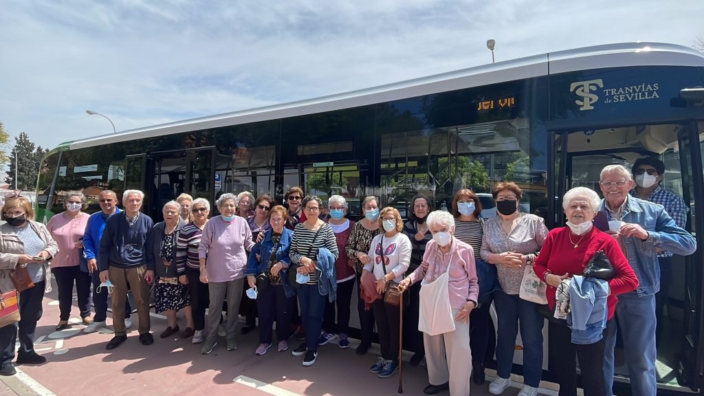 Personal de la empresa Tranvías de Sevilla, ha mostrado a los mayores distintos aspectos que deben tener en cuenta para realizar el acceso al bus, como son el rótulo indicador de línea o el altavoz indicador de línea. Además les ha explicado cómo solicitar la bajada de suspensión si es necesario, y cómo funciona el freno de puerta (el bus no se puede mover con puertas abiertas, se activa un freno que el conductor no puede manipular, solo se desactiva tras 5 segundos de puertas cerradas). Los mayores han podido ver además, una demostración del sistema de puertas antiatrapamiento, que se vuelven a abrir si topan con algo o alguien, aclarando así una de sus mayores