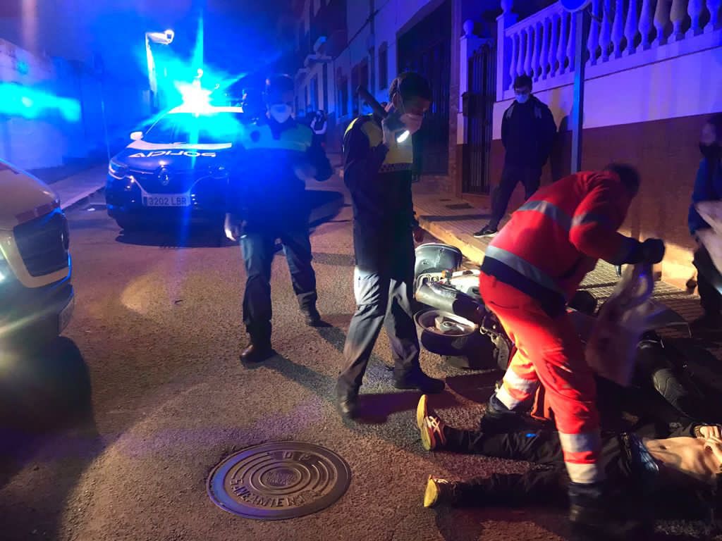La Policía Local levantó acta del suceso y los sanitarios atendieron al herido para después trasladarlo hasta el Hospital San Juan de Dios.