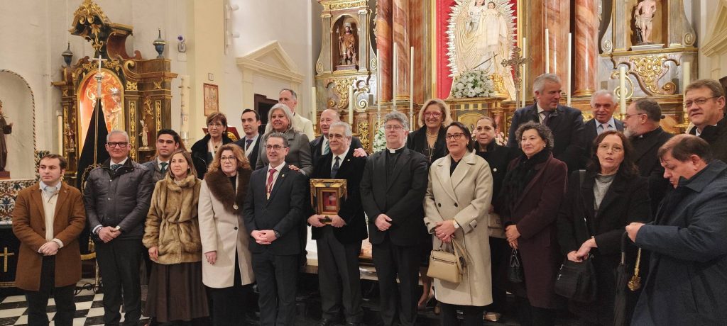 Tras el tradicional “He dicho”, se procedió a los reconocimientos. D. Doroteo Marín Rodríguez recibió la medalla de Lauretum entre aplausos, dedicando palabras llenas de fe y amor a su pueblo. También fueron distinguidos la saetera, el director de la Coral y la presentadora del pregonero.