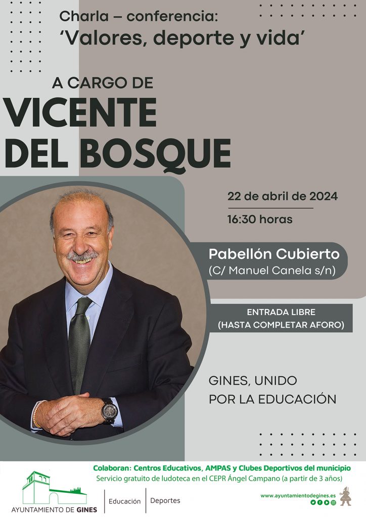 En esta ocasión, la cita viene bajo el título ‘Valores, deporte y vida’, charla – conferencia que correrá a cargo de Vicente del Bosque; ex futbolista, entrenador y figura clave en la historia del deporte español que cuenta en su haber con un palmarés inigualable que incluye, entre otros, dos Ligas de Campeones y el único mundial de la Selección Española de Fútbol.